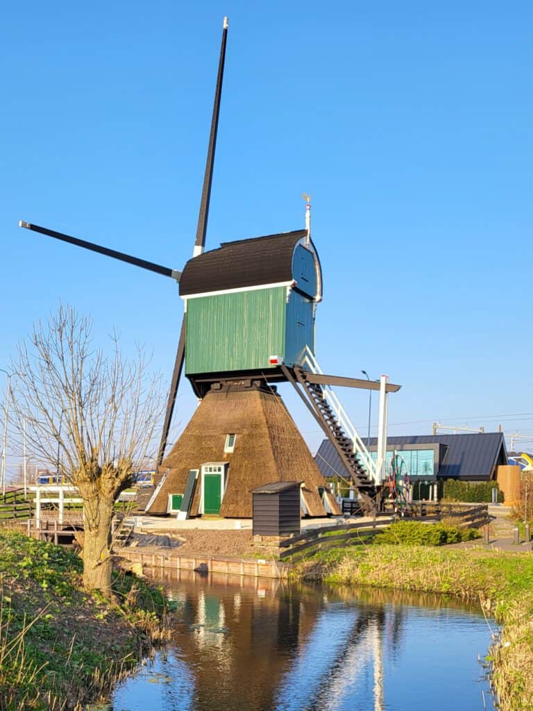 Toen ik de foto op 8 maart 2024 gemaakt heb waren de roeden van de molen gehaald. Deze zal binnenkort weer worden gestoken – erop gezet worden.