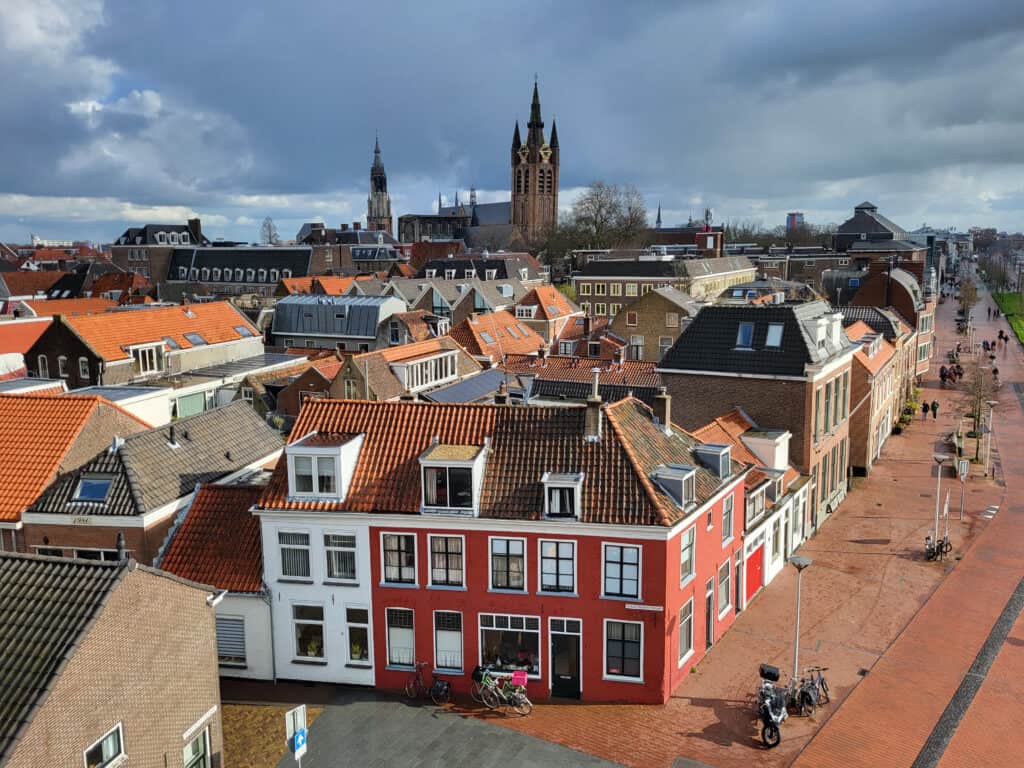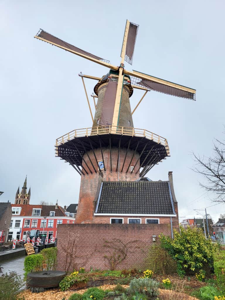 Je kan vrij hoog de molen in en de molen van binnen goed bekijken. Vanaf de hoge stelling heb je prachtig uitzicht over het stadscentrum met o.a. de torens van de Oude en de Nieuwe Kerk.