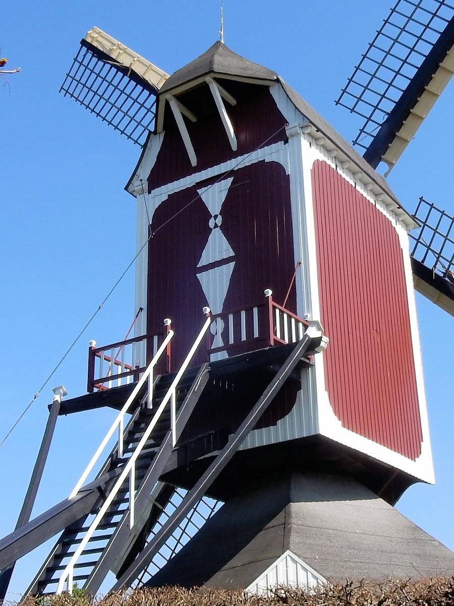 Technische gegevens: Vlucht=24,50m – Wiekenvorm=Oud Hollands – 1 koppel maalstenen – Kap en voorzijde gedekt met eiken schaliën