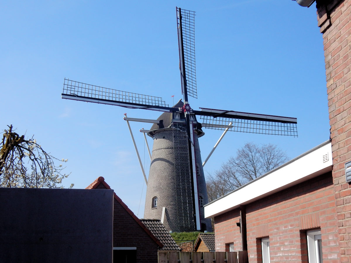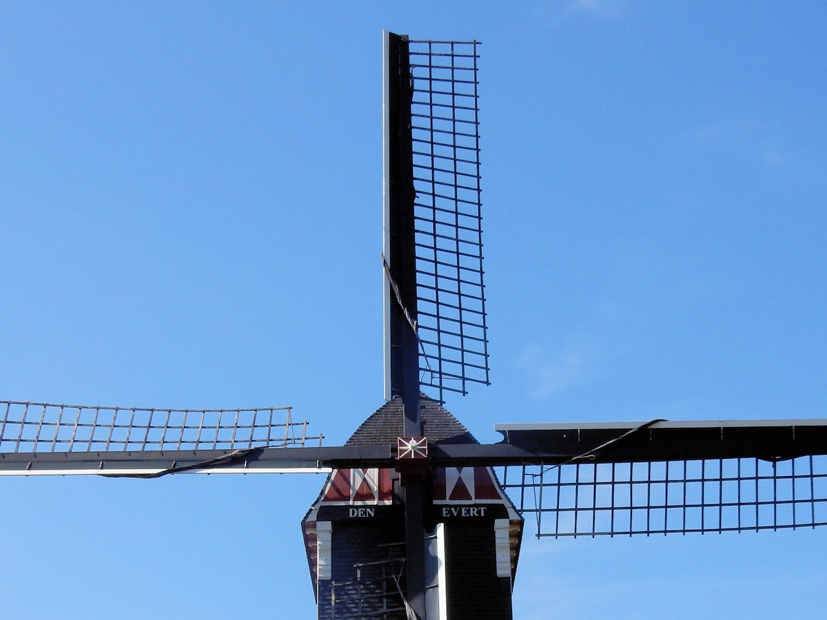Technische gegevens: Vlucht=26,60m vervangen in 2015 – Wiekenvorm=Oud Hollands – 1 koppel maalstenen – Kap gedekt met dakleer