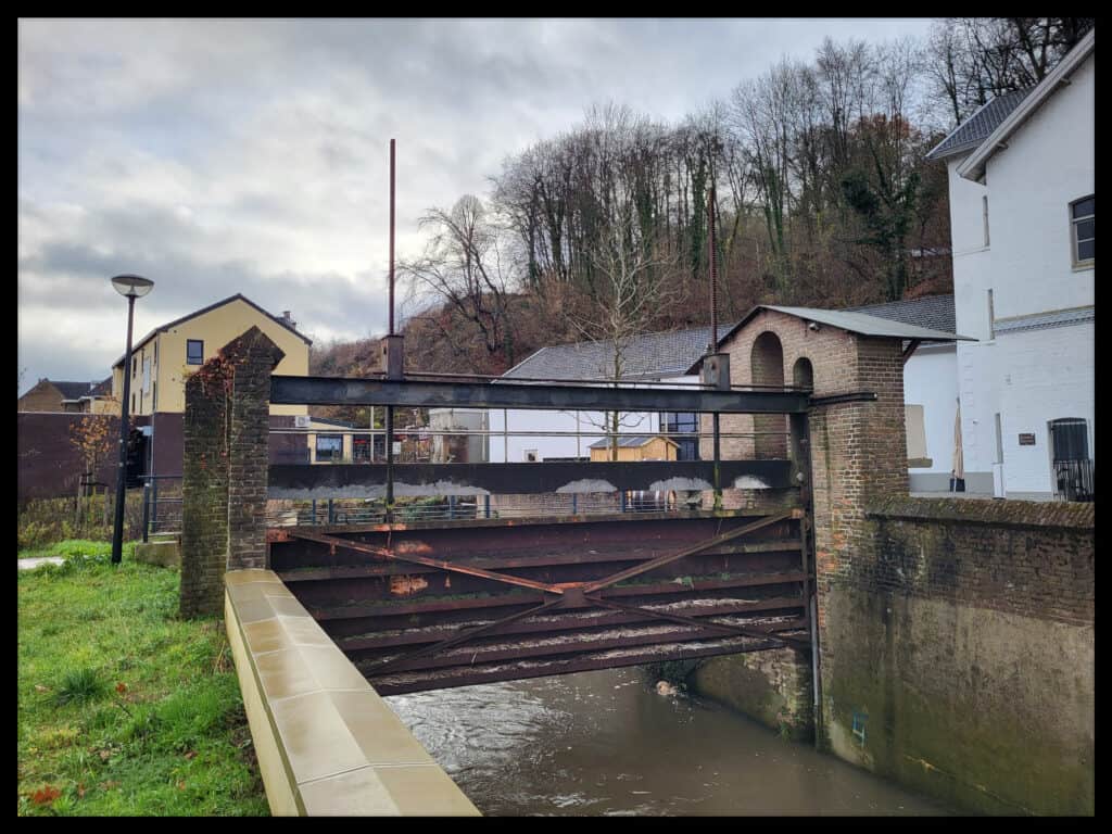 Het water dat de molen bereikt wordt via de Walramstuw door de molentak naar de watermolen geleid.